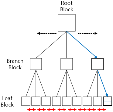 - 데이터가 삽입될 위치를 찾기 위해 현재 인덱스 구조 검색.