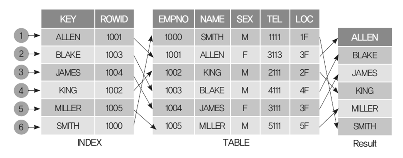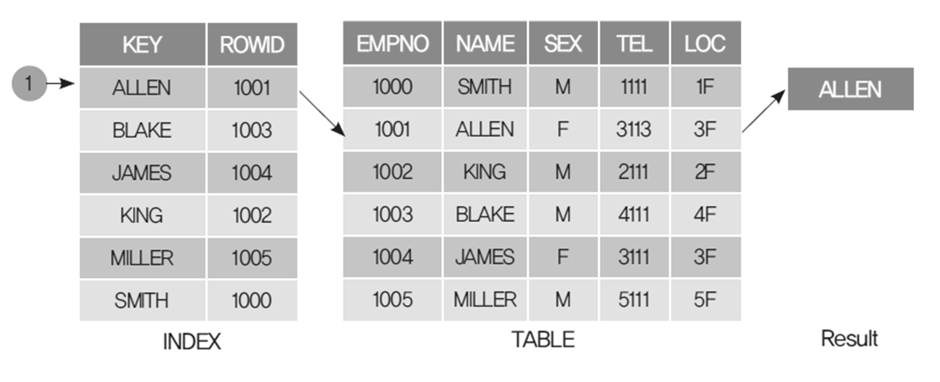 - 해당 키가 발견되면, 테이블의 실제 행으로 이동하여 나머지 열 값 반환