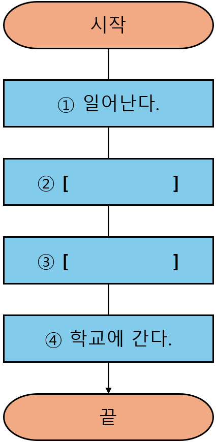 "영희는 아침에 일찍 일어나서, 세수를 하고 학교에 갔다"
