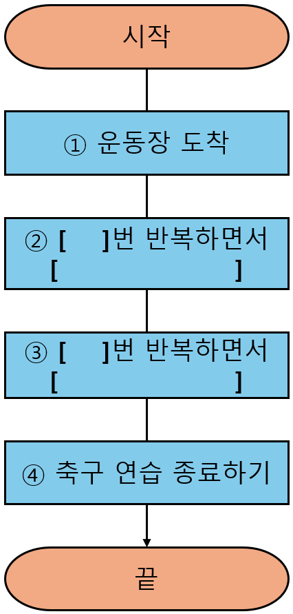 재석이가 축구 연습을 하려고 한다. 운동장 도착 후 드리블 연습 100번과 슈팅 연습 300번을 하고 축구 연습을 마친다.