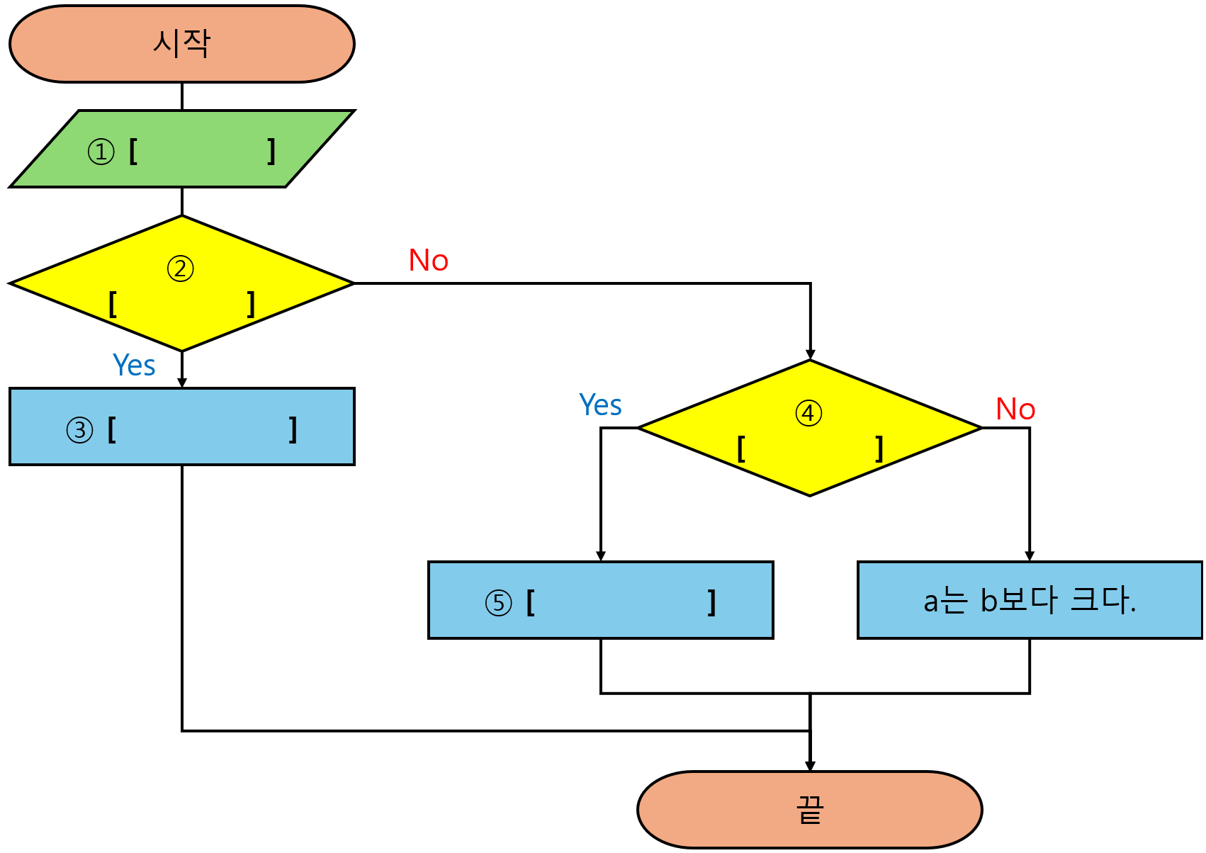 2개의 정수를 입력 받아 두 수의 크기를 비교하는 알고리즘을 설계하시오.