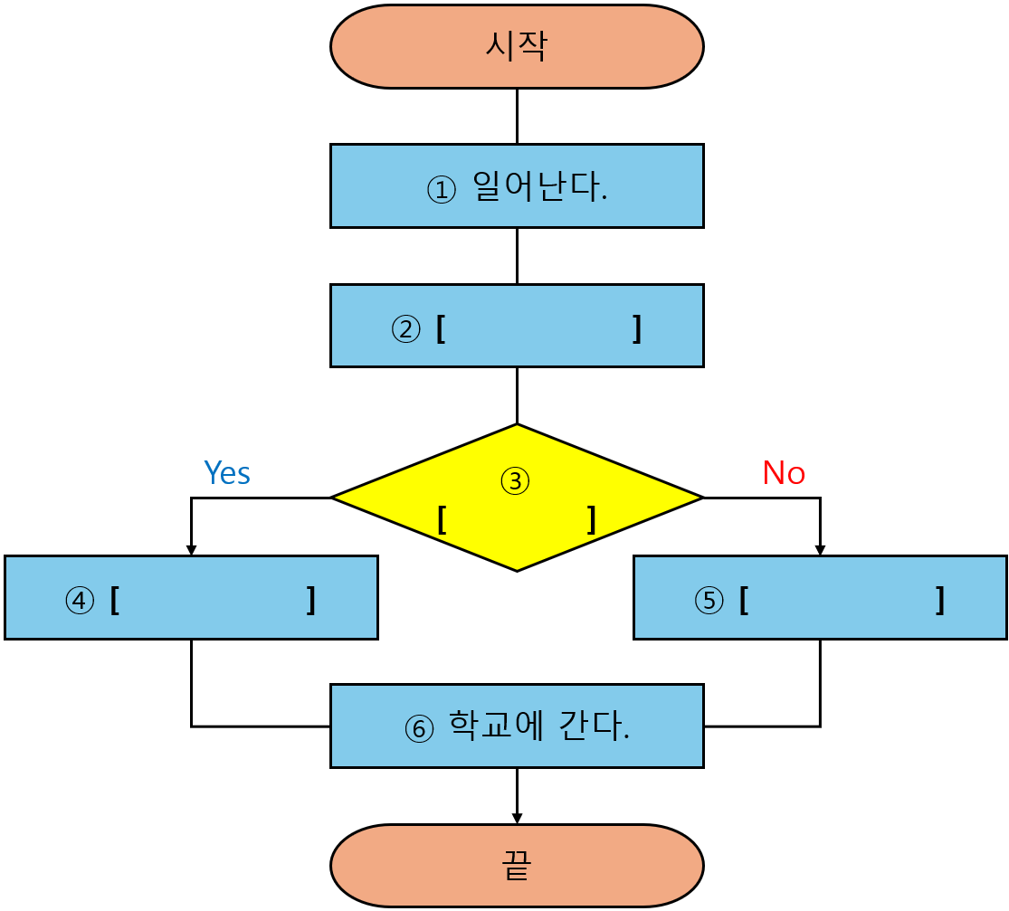 35. 다음에 제시된 문제의 흐름을 파악하여 알맞게 분해하고, 분해된 내용에 맞는 알고리즘 순서도로 표현해 보자.