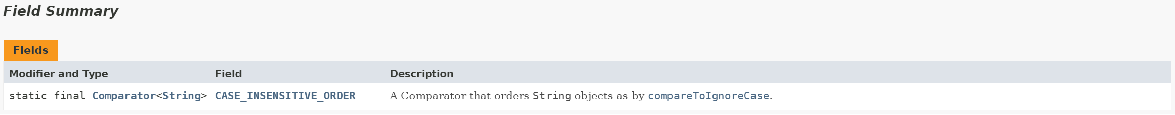 Modifier and Type에서는 static 여부와 필드 타입을 알 수 있고, Field와 Desciption은 필드명과 그에 대한 간단한 설명이다. 필드명을 클릭하면 필드 선언부와 상세한 설명이 나온다. 관례적으로 필드 이름이 모두 대문자이면 public static final로 선언된 상수 필드이다.