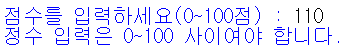 score = int(input("점수를 입력하세요(0~100점) : "))