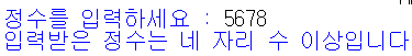 02. 정수 하나를 입력받아 자릿수를 구하는 프로그램을 작성하시오. 그리고 입력받은 정수가 네 자리 수 이상이면 '네 자리 수 이상입니다.'를 출력하시오.
