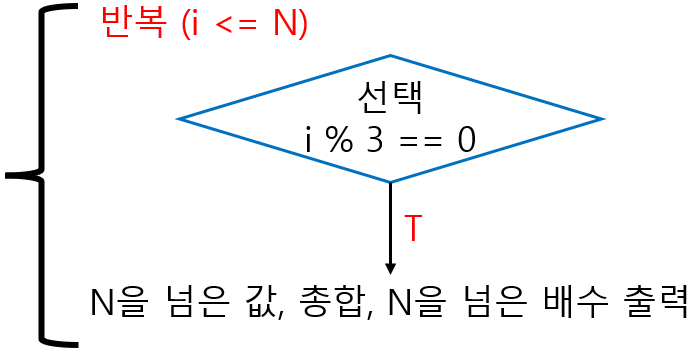 - 사용자가 입력한 숫자를 넘었을 때의 값, 넘었을 때까지의 총합계, 몇 번째 3의 배수인지 출력 : 반복 논리