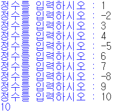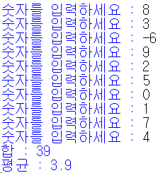 - 사용자에게 10개의숫자를 10번 반복하여 입력 받음