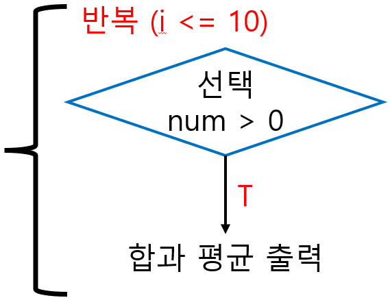 - 0보다 큰 수에 대해서만 합과 평균을 출력 : 선택 논리
