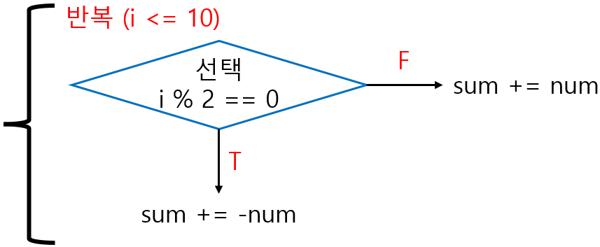 - 짝수 번째에 입력되는 숫자는 양수를 음수로, 음수는 양수로 바꾼다 : 선택 논리