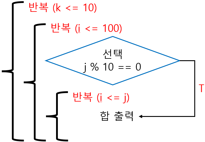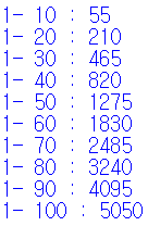 - 1부터 100까지 반복하고, 10 단위로 각 합 출력