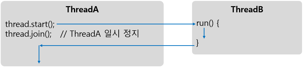 스레드는 다른 스레드와 독립적으로 실행하지만 다른 스레드가 종료될 때까지 기다렸다가 실행을 해야 하는 경우도 있다. 이를 위해 스레드는 join() 메소드를 제공한다.