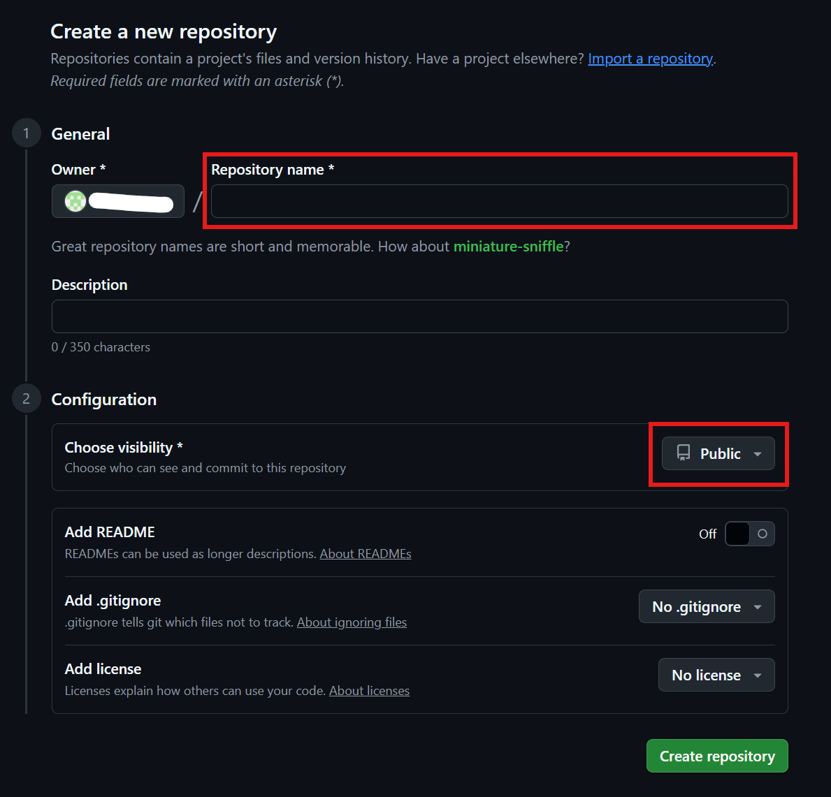 아래의 사진에 표시된 내용은 반드시 설정한다. 나머지는 선택 사항이다.
