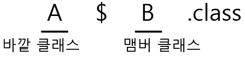 멤버 클래스일 경우 바이트코드 파일의 미름은 다음과 같이 결정된다.